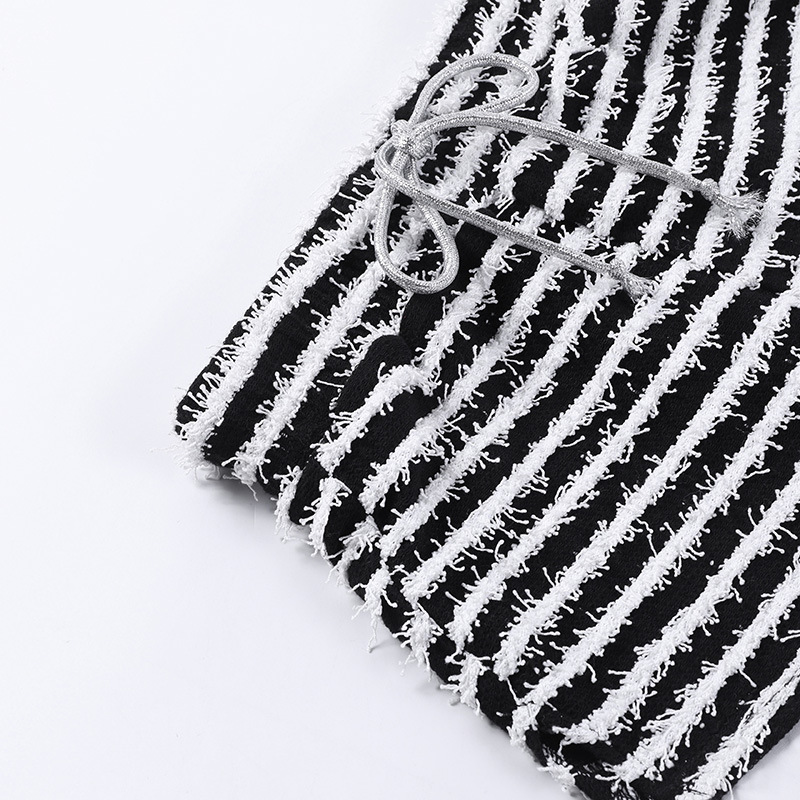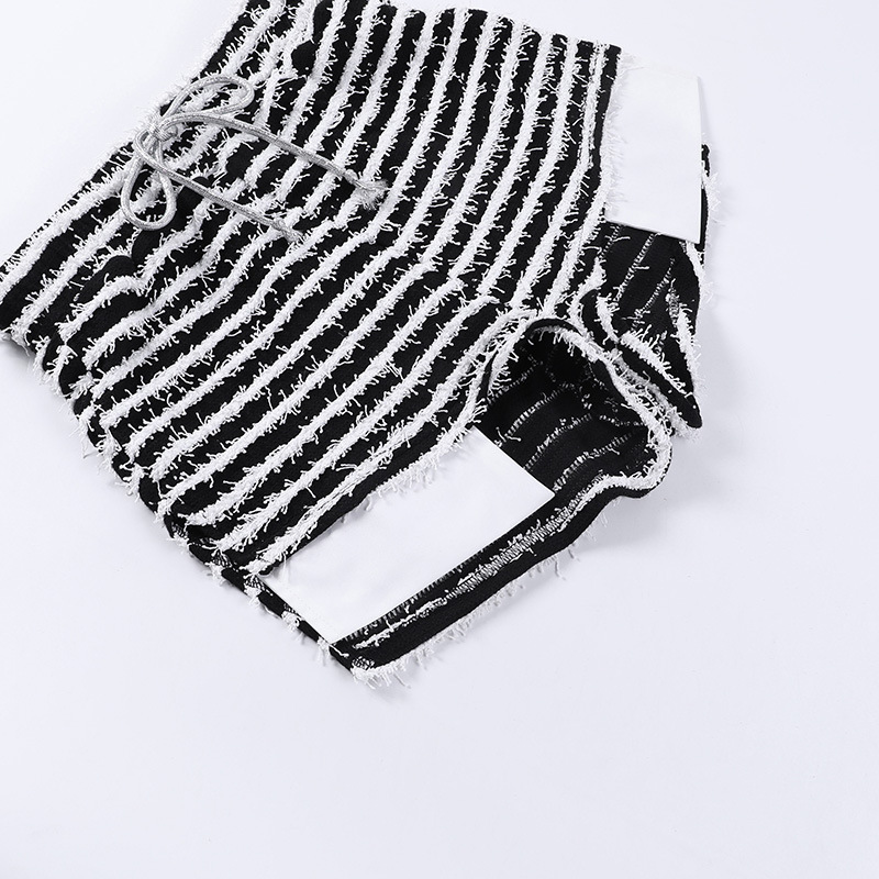 Texture Striped Drawstring High Waist Super Short Shorts